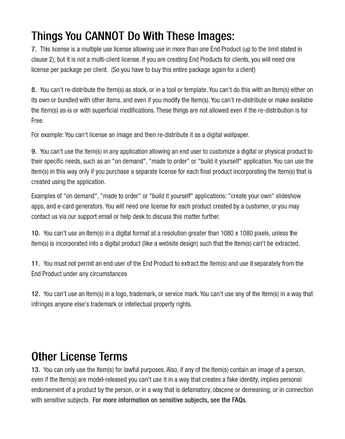 To top it all off, you ALSO get the "extended" royalty-free license meaning you have commercial usage rights to utilize these for your clients.