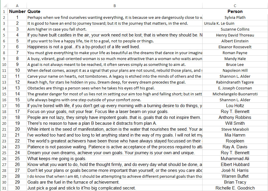 That's why you'll also receive all 100 of the quotes in a neat and organized spreadsheet file that you can easily open up and navigate to that quote.